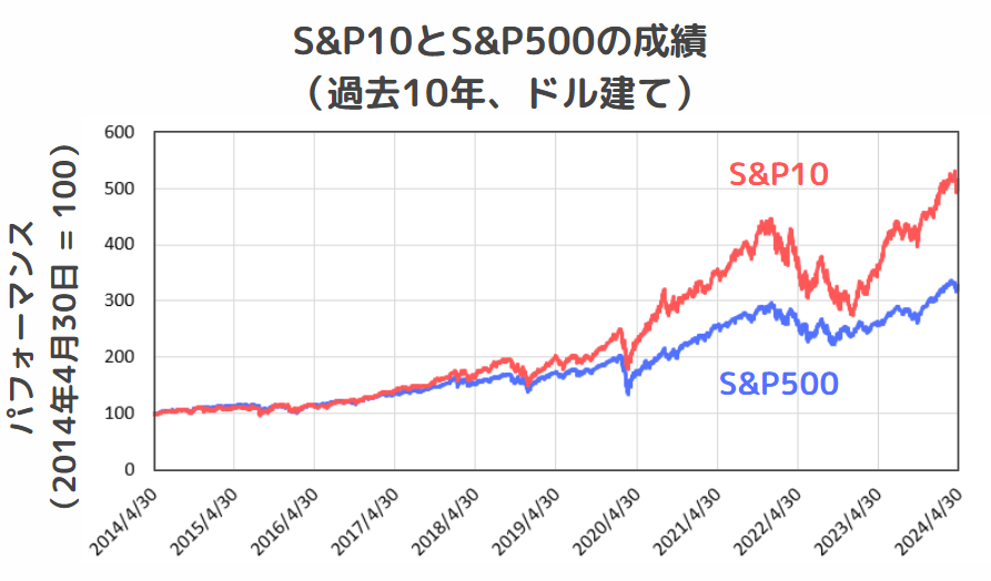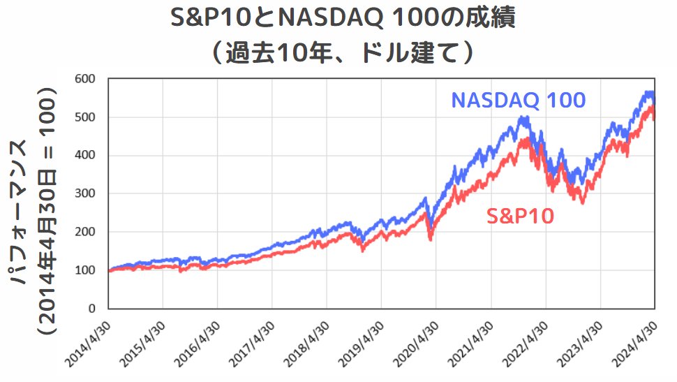 S&P10はNASDAQ100に近いので、ここ10年はS&P500より当然優秀